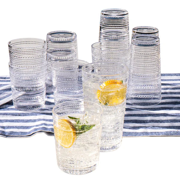 Acrylic 12-piece Glasses Drinkware Set, Beaded Clear