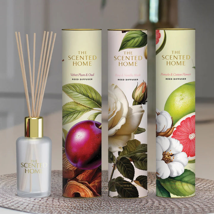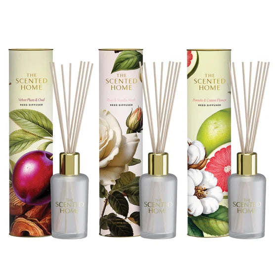 A set of 3 of our most popular luxury fragranced reed diffusers to fill your space with lasting and impactful scent that diffuses safely all day long. Gorgeous gift-worthy outer tubes and frosted glass bottles that are perfect to display and elevate your interiors! A scent for every mood and space.Includes: