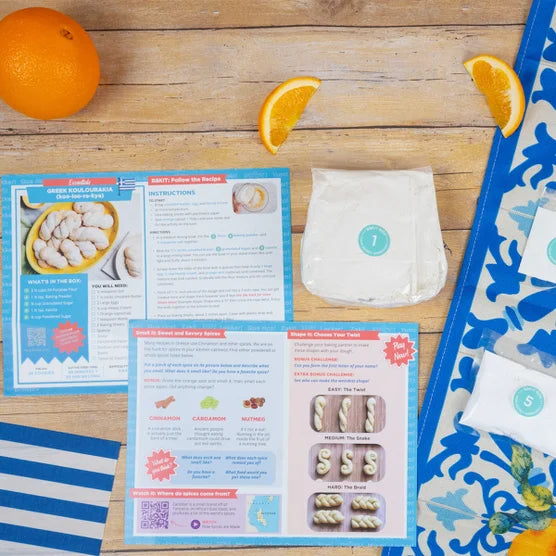 Bake your way around the world with the Global Delights Baking Kit – 3 Recipe Bundle for Kids. This set includes three culturally inspired recipes: soft Greek Koulourakia twists, sweet and earthy Japanese Matcha Cookies, and fragrant Persian Love Cake.Each kit comes with pre-measured ingredients, easy-to-follow, color-coded instructions, and hands-on STEM and creative activities that explore global traditions through baking. Perfect for family fun, learning at home, or unique gifting.Includes:Japanese Matcha Cookies