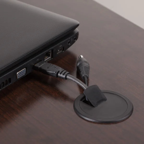 - Integrated wire management grommets on desk