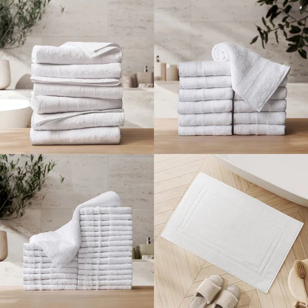 Enova Recycled Cotton Towel and Bath Mat Sets for Hospitality and Home