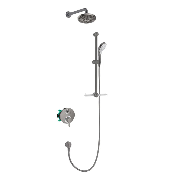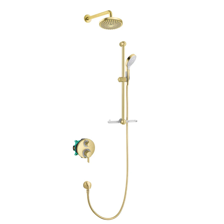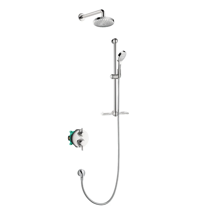Set Includes 7-inch Showerhead, Showerarm, Handshower, Wall Outlet, Wall Bar With Slider, Handshower Hose, Thermostatic Trim With Volume Control And Diverter, And iBox Rough Valve