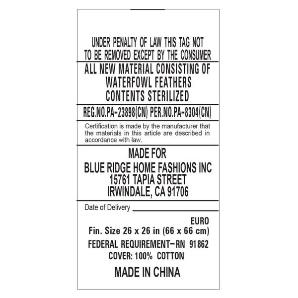 26’ x 26”; Weight: 4.2 lbs. PER PILLOW (Note 2 Pack)