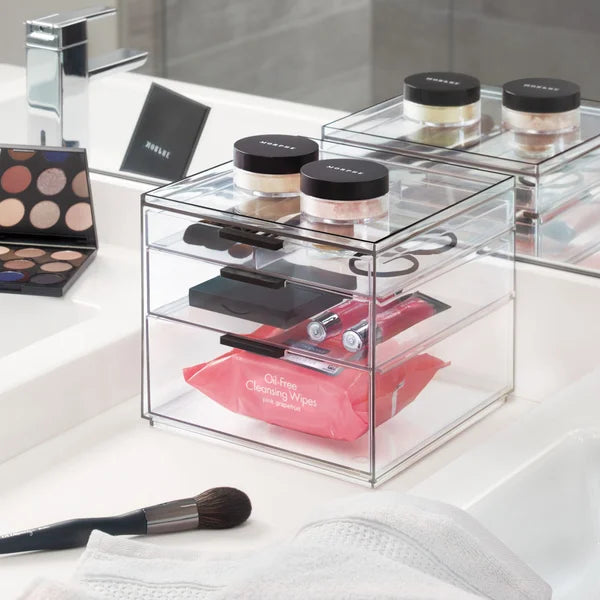 - The 3-drawer organizer has a lip on the top that allows the other pieces to be stacked on top of it