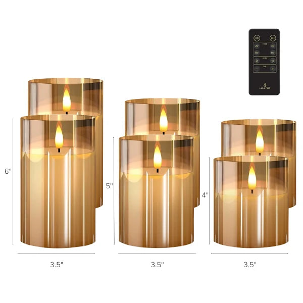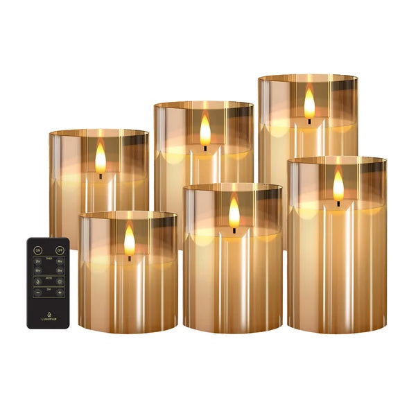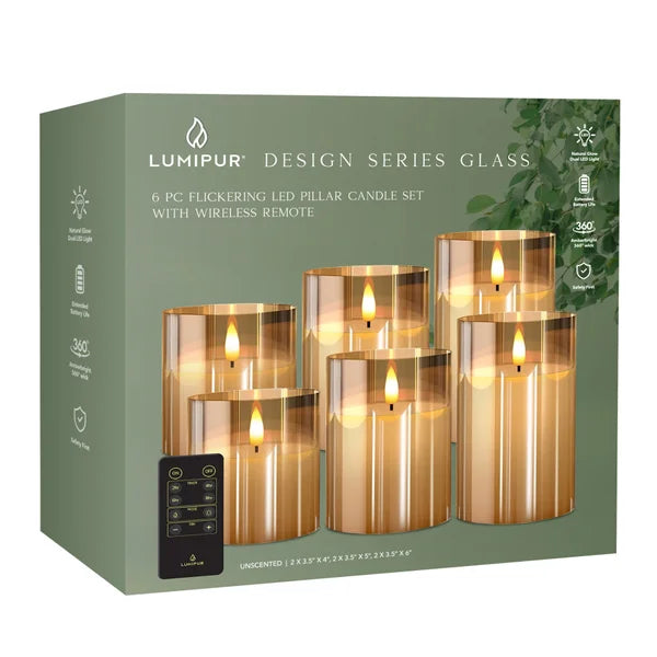 LumiPur 6-piece Flameless LED Candles Design Series Glass with Remote