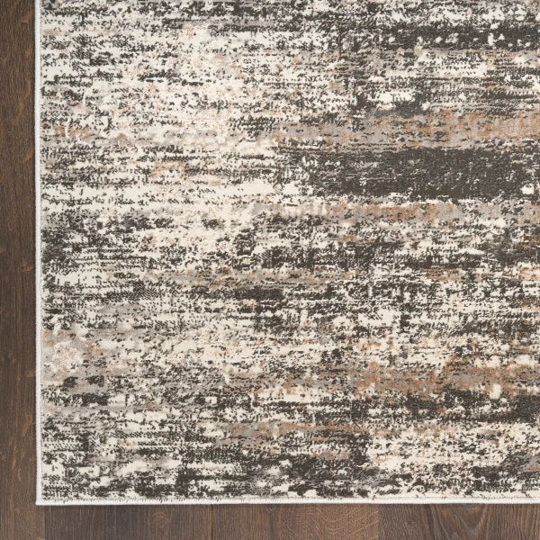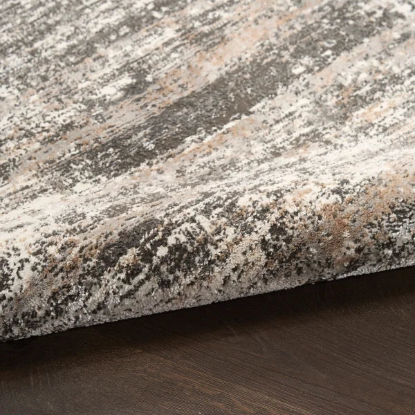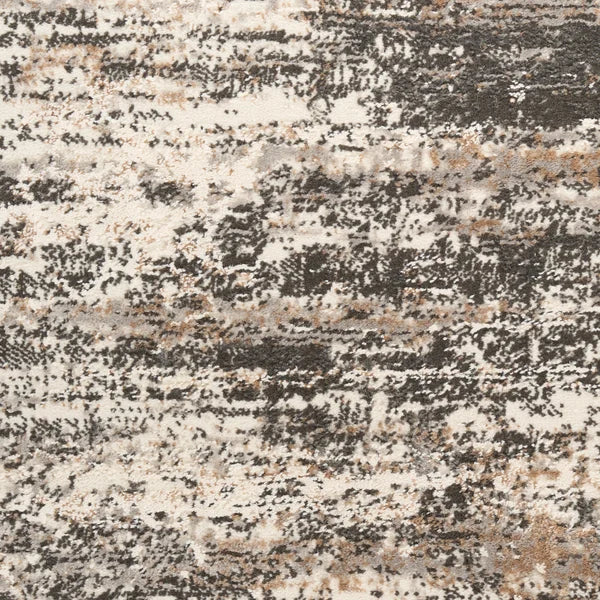 Bring cozy texture and a modern edge to your home with this abstract rug from the Arctic Collection. The distressed design blends charcoal, ivory, and taupe tones into a beautifully weathered look that adds warmth and dimension. Made from ultra-soft polyester yarns with a lustrous finish that gives the surface a subtle, eye-catching sheen.