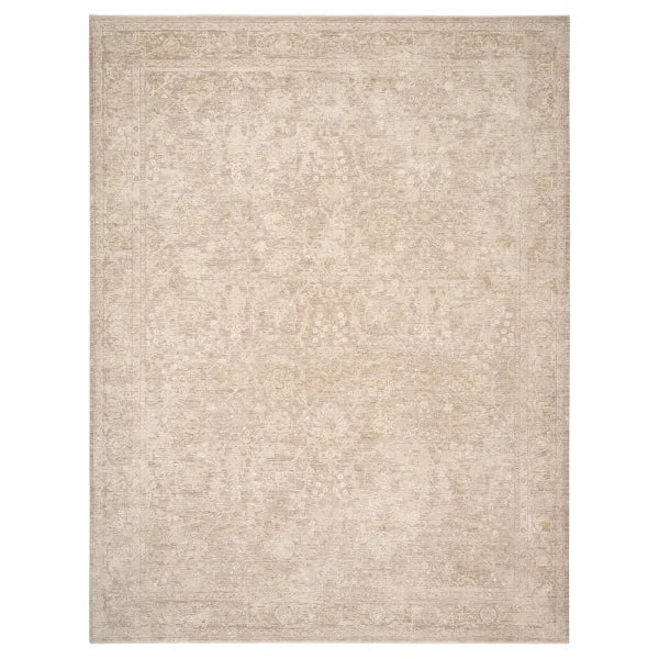 This vintage-inspired ivory and taupe rug from the Seraphine collection adds a hint of classic flair to your space. The intricate Persian style design has a gently distressed effect for a timeworn look that feels both refined and relaxed. Woven from a blend of polyester and viscose with a soft texture that feels great on bare feet.