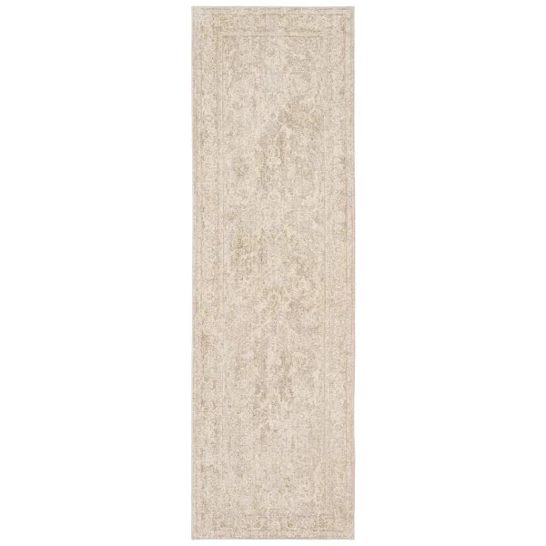 This vintage-inspired ivory and taupe rug from the Seraphine collection adds a hint of classic flair to your space. The intricate Persian style design has a gently distressed effect for a timeworn look that feels both refined and relaxed. Woven from a blend of polyester and viscose with a soft texture that feels great on bare feet.