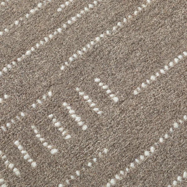 The Nomad wool rug in Zen Coffee, crafted from 100% wool for unmatched softness and durability, features a sleek linear design in neutral tones. This rug adds a touch of modern elegance while complementing a variety of décor styles and is perfect for living spaces or bedrooms. Its dense wool construction ensures lasting quality and a luxurious feel underfoot.