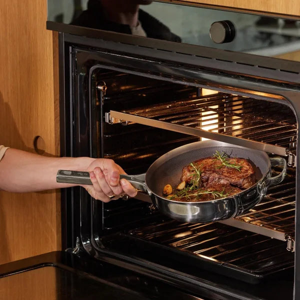 High-Heat Benefits and Durability of Stainless Steel and Ease of Nonstick