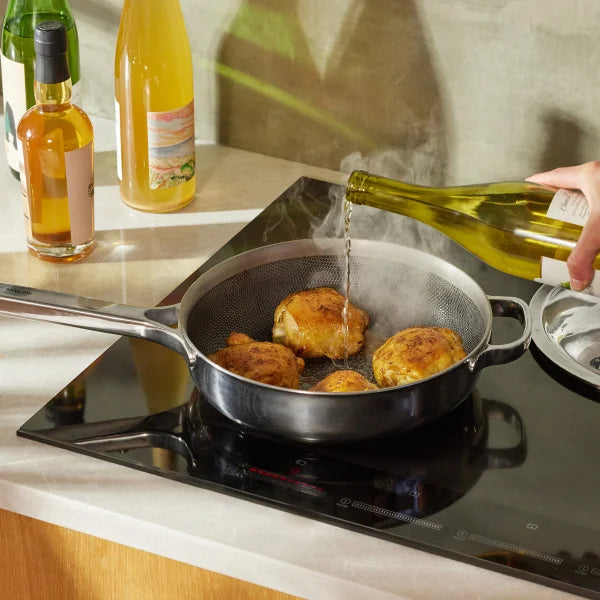 - High-Heat Benefits and Durability of Stainless Steel and Ease of Nonstick