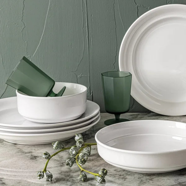 Rimmed 12-piece Glossy Porcelain Dinnerware Set