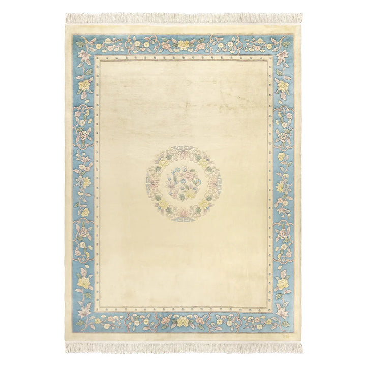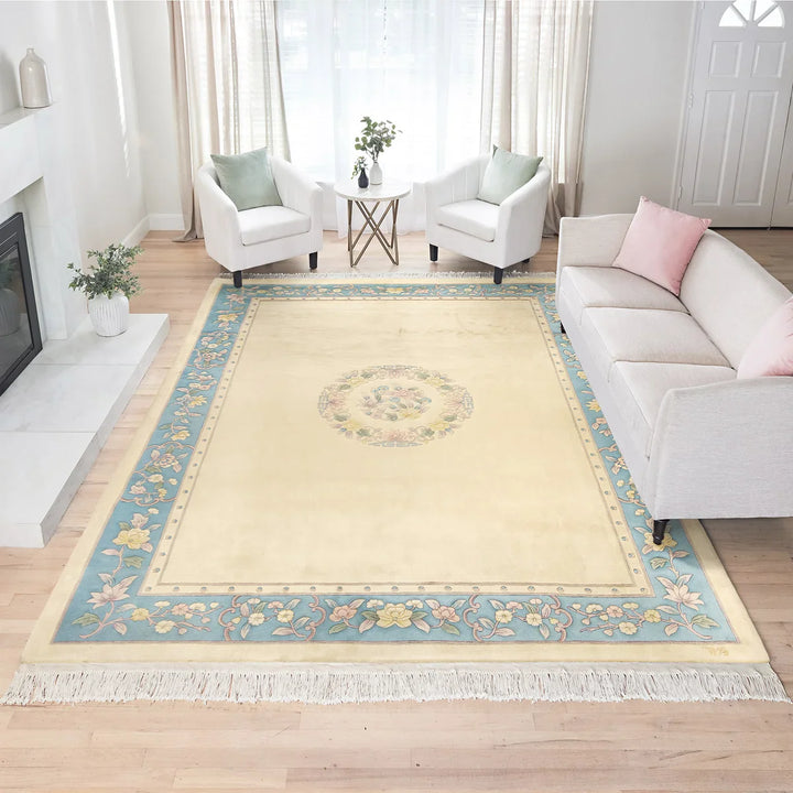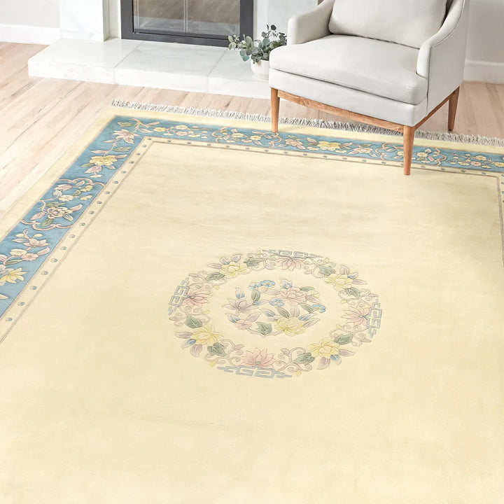The rug is the gold standard of handmade rug production. The pile is wool, incredibly thick and soft, and finished with hand-carved sculpturing of design elements for dramatic effect. Each of these rugs is created by skilled artisans who use centuries old techniques that are largely unchanged over many generations. While all of the rugs within a collection will feature the same colors and designs, the nature of handmade rugs is such that each piece can have subtle differences which make them, literally, “one of a kind.” This is a unique feature of handmade carpets. These differences range from slight color variations to subtle differences in design and “scale” of the rug. These differences can be due to the hand knotting and yarn dyeing processes. Larger pieces will have more detail in the designs and smaller pieces will have design adjustments so that the pattern is suitable for the size of the rug.
