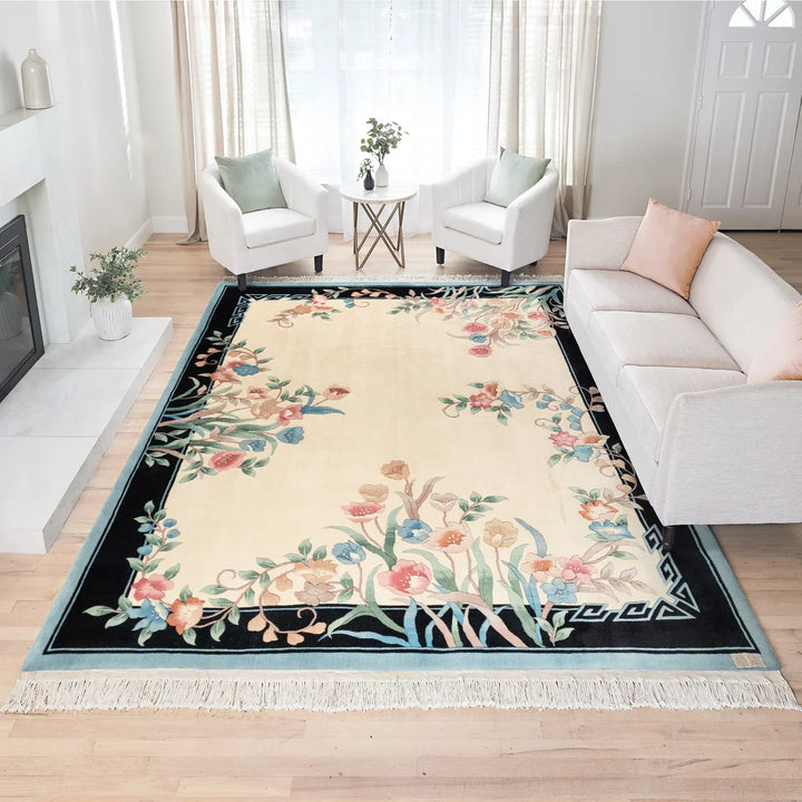 The rug is the gold standard of handmade rug production. The pile is wool, incredibly thick and soft, and finished with hand-carved sculpturing of design elements for dramatic effect. Each of these rugs is created by skilled artisans who use centuries old techniques that are largely unchanged over many generations. While all of the rugs within a collection will feature the same colors and designs, the nature of handmade rugs is such that each piece can have subtle differences which make them, literally, “one of a kind.” This is a unique feature of handmade carpets. These differences range from slight color variations to subtle differences in design and “scale” of the rug. These differences can be due to the hand knotting and yarn dyeing processes. Larger pieces will have more detail in the designs and smaller pieces will have design adjustments so that the pattern is suitable for the size of the rug.
