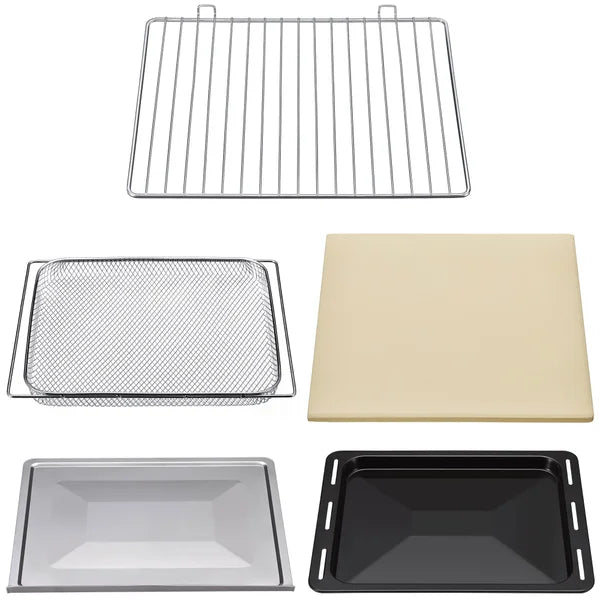 Mesh Basket, Wire Rack, Baking Pan, and a Pizza Stone