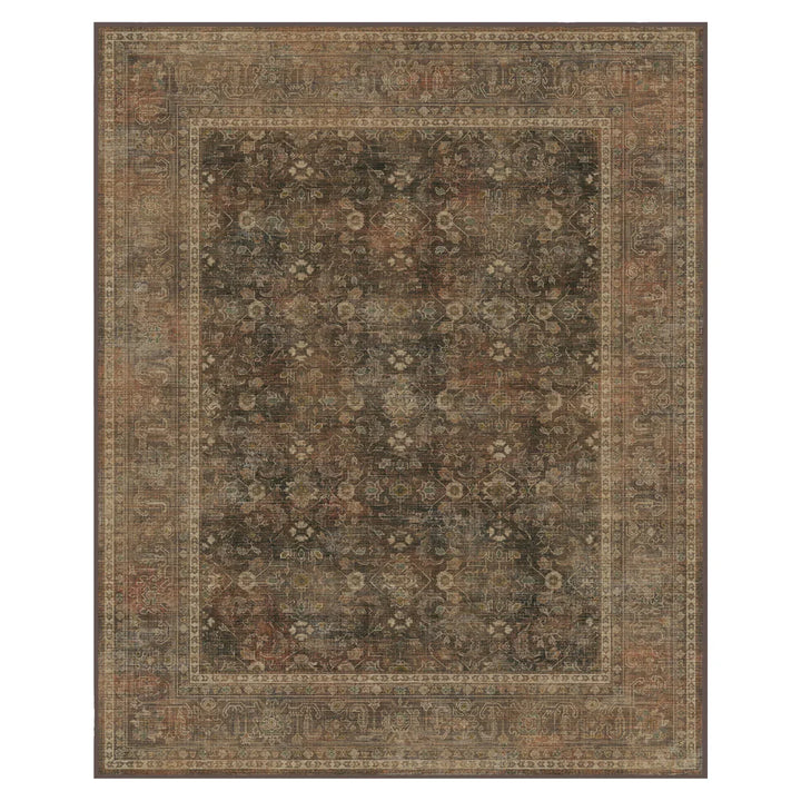 Inspired by vintage rugs, this washable rug offers a fresh take on antique style with a rich, bronze palette with pops of grey-blue, green, and coral in a lovely, bordered design. Water-resistant, stain-resistant, and machine-washable, and ideal for homes with kids or pets, particularly in high-traffic areas like entryways, living rooms, dining rooms, kitchens, bathrooms, bedrooms, and hallways.