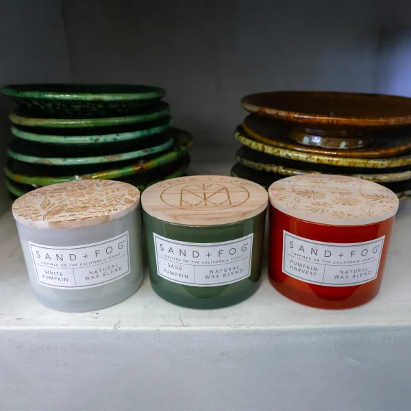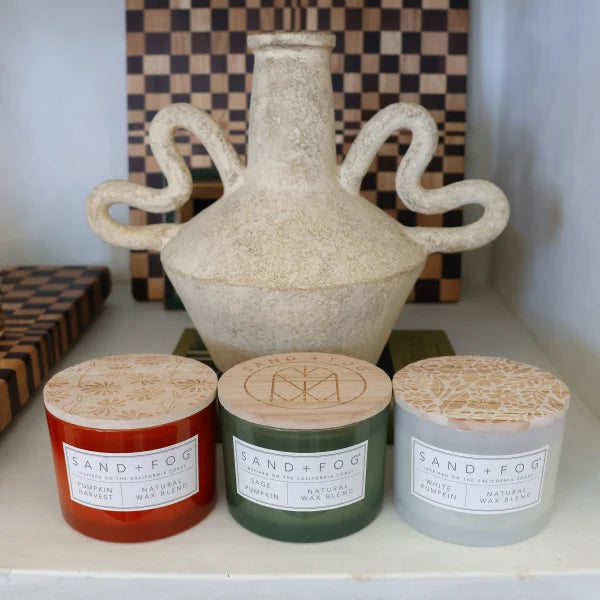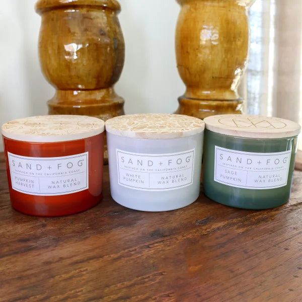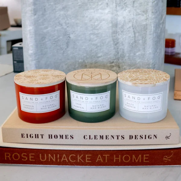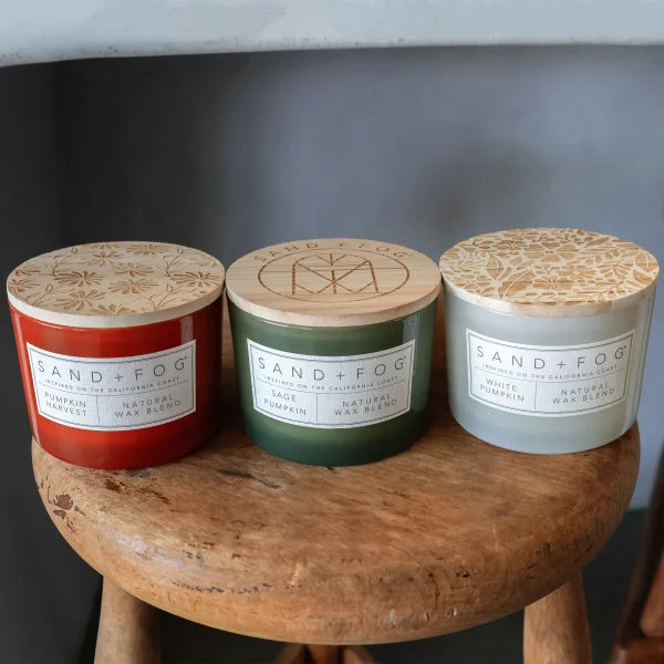 Sand + Fog Set of 3 12oz Candles with Carved Wood Lids