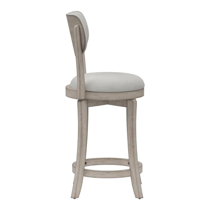 Midcentury modern design with a classic color palette, the Saul Swivel Counter Height Stool has versatile style. This 360° swivel counter height stool features a Black wood finish with Slate Gray upholstery or aged Gray finish with light Gray upholstery with welt piping. Both the seat and back are padded for extra comfort and the perfectly placed footrest makes it easy to relax. Ideal for your kitchen island or counter height dining table.