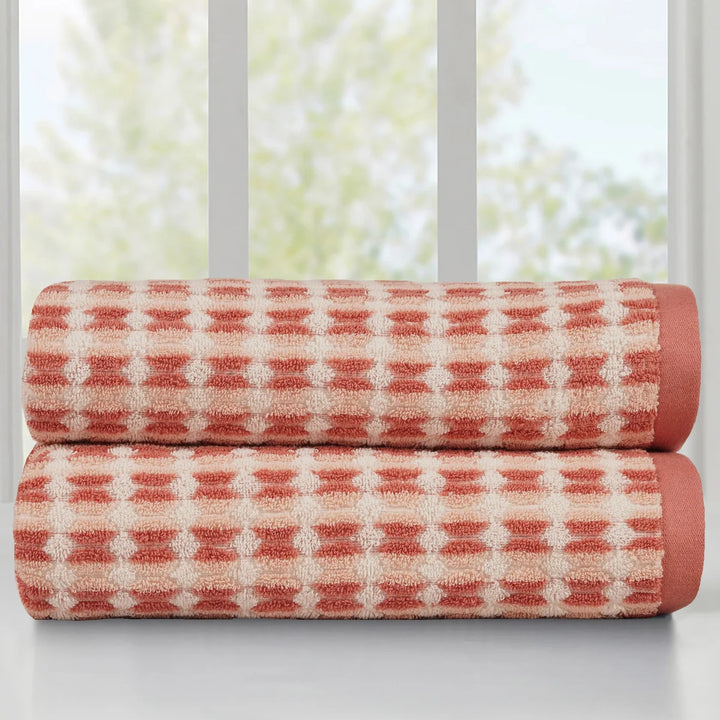 Crafted from 100% Cotton, the textured bath towel features a striking geometric pattern in a terry weave. This design offers bold, versatile style for your bathroom. Soft, absorbent, and gentle on the skin, these towels are as practical as they are beautiful.