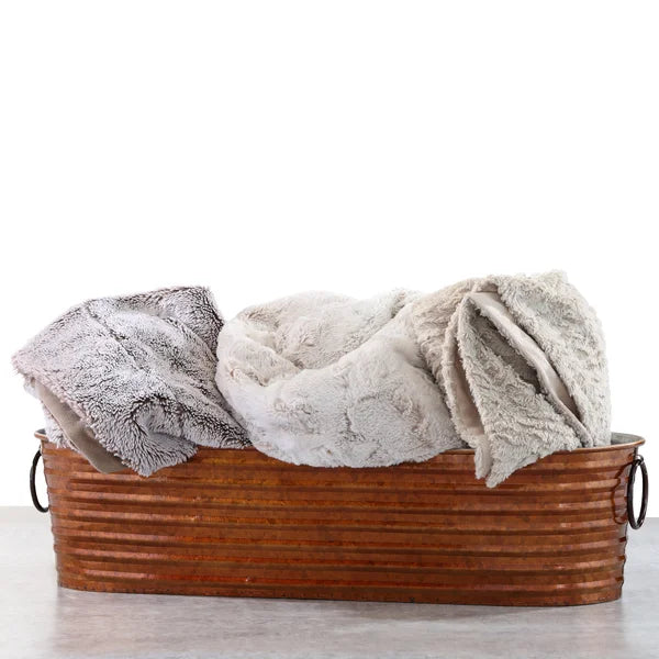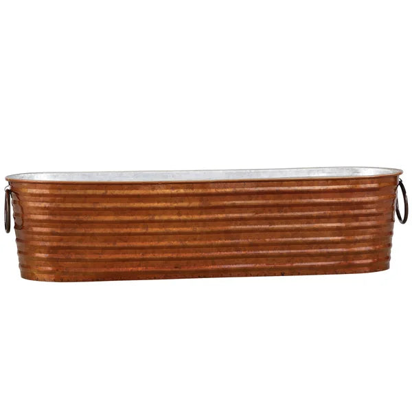 - Embossed Metal Basket with ring Handles 27x9x6.5/8.5” (China)