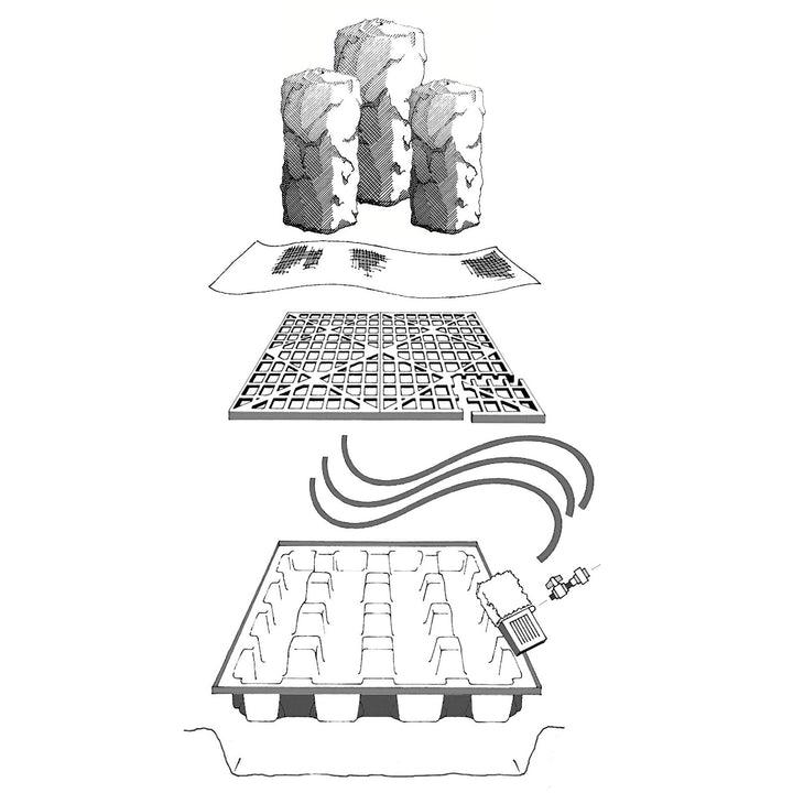- (1) 15" Tall Boulder, (1) 24" Tall Boulder, (1) 34" Tall Boulder 70+ Gallon Reservoir Basin Included