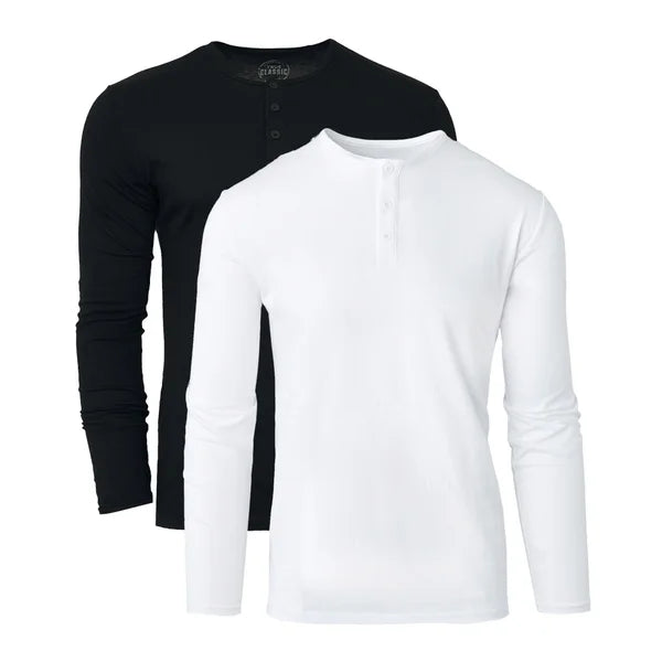 - Black pack contains (2) long sleeve Henleys: Black and White