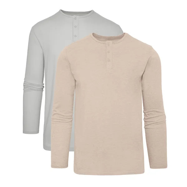 - Tan pack contains (2) long sleeve Henleys: Tan and Gray