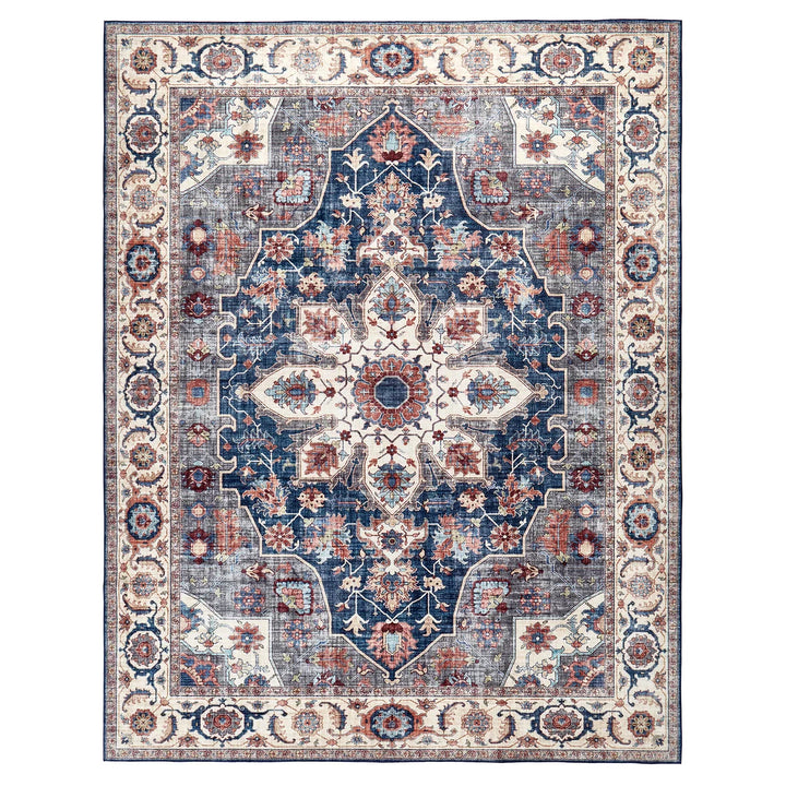 This washable area rug is the perfect addition to elevate your living room, dining room, or family room. This generously sized rug, not only provides ample coverage for any of these spaces but also offers the convenience of easy maintenance. Designed to withstand the demands of daily life, it's made with washable materials, allowing you to keep it looking fresh and clean with minimal effort.